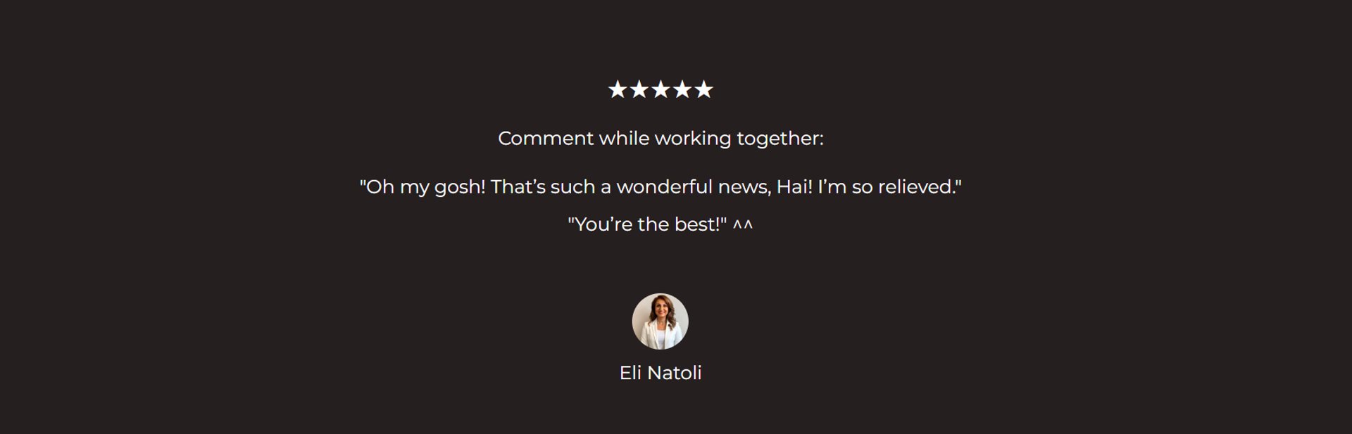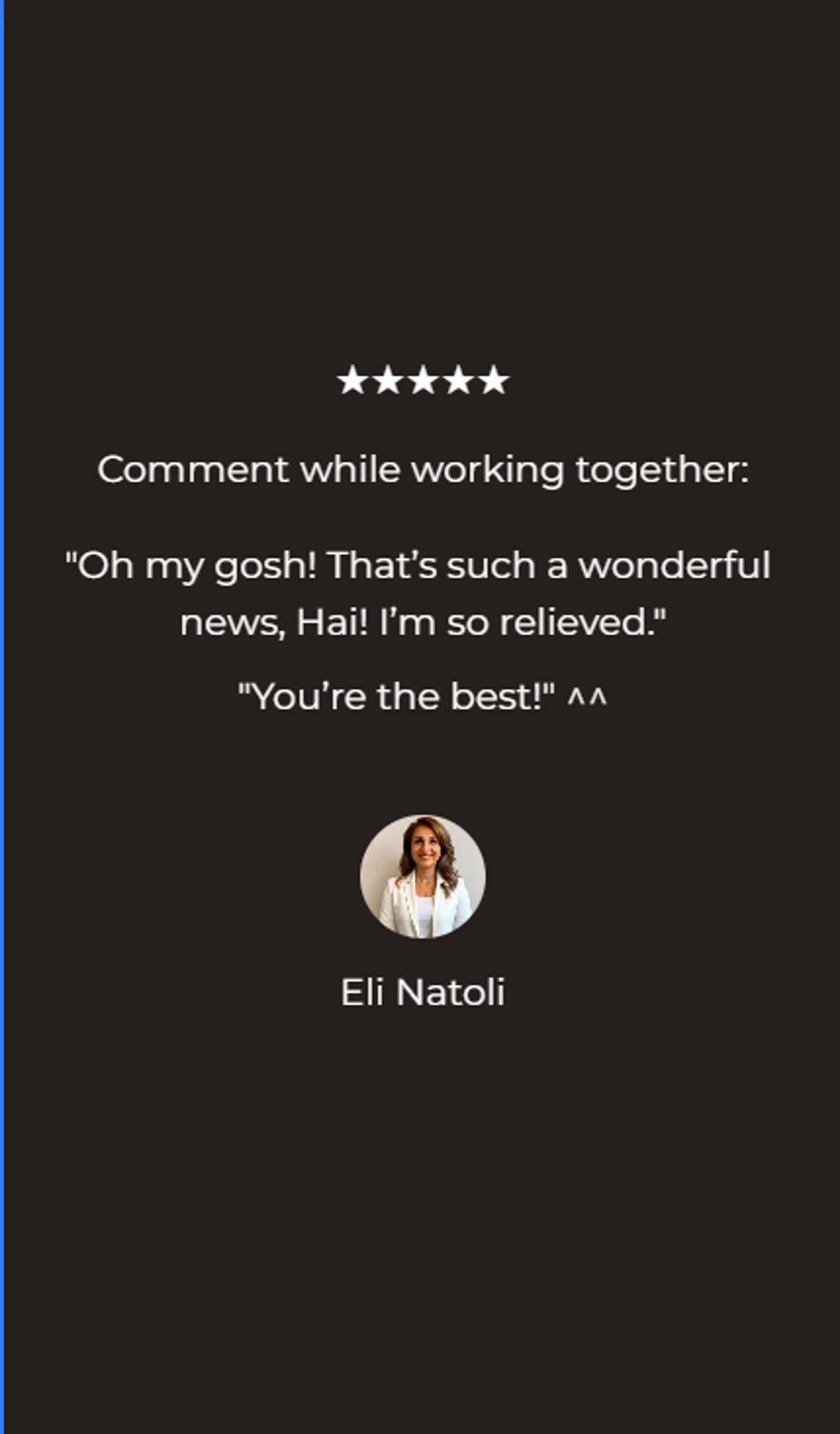 "Oh my gosh! That’s such a wonderful news, Hai! I’m so relieved."